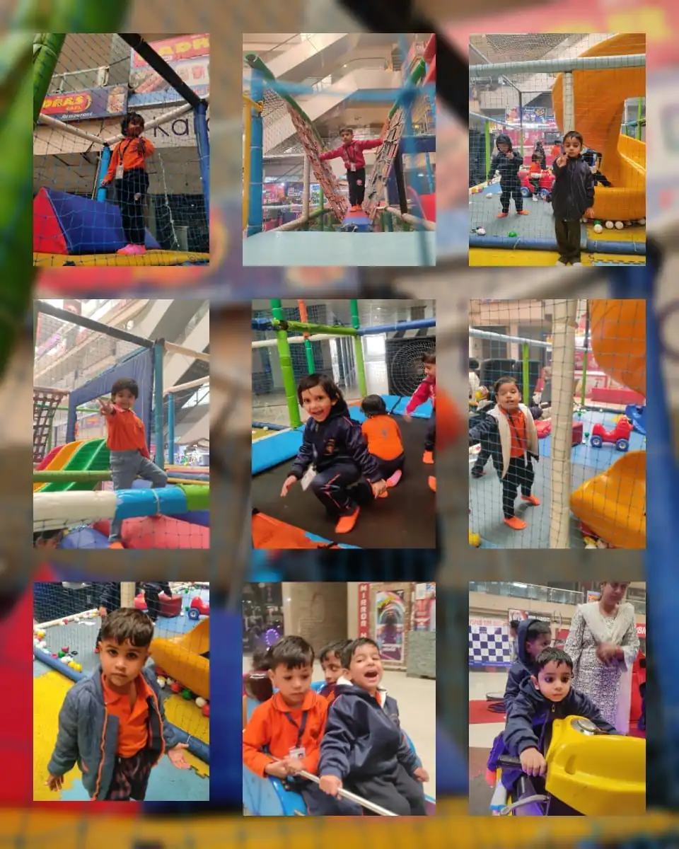 प्रातः काल स्कूल आने पर सभी बच्चों का टीचर्स द्वारा पुष्प वर्षा कर स्वागत किया गया ओर उन्हें बाल दिवस की शुभकामनाएं दी गई। प्रिंसिपल नेहा अरोरा द्वारा सभी बच्चों को बाल दिवस के आयोजन का उद्देश्य बताया गया। इसके पश्चात प्ले और नर्सरी क्लास के बच्चों को ग्रांड प्लाजा मॉल में स्थित हैप्पी लैंड का भ्रमण कराया गया।सभी बच्चों ने वहां सभी झूलो का ,फन गेम्स का, पांडा ट्रेन का, इत्यादि का बहुत एंजॉय किया।