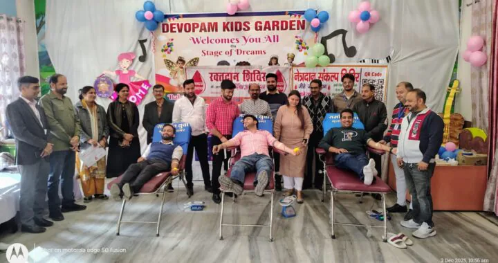 देवोपम किड्स गार्डन में लगे रक्तदान शिविर में 35 रक्त वीरों एवं वीरांगनाओं ने किया रक्तदान