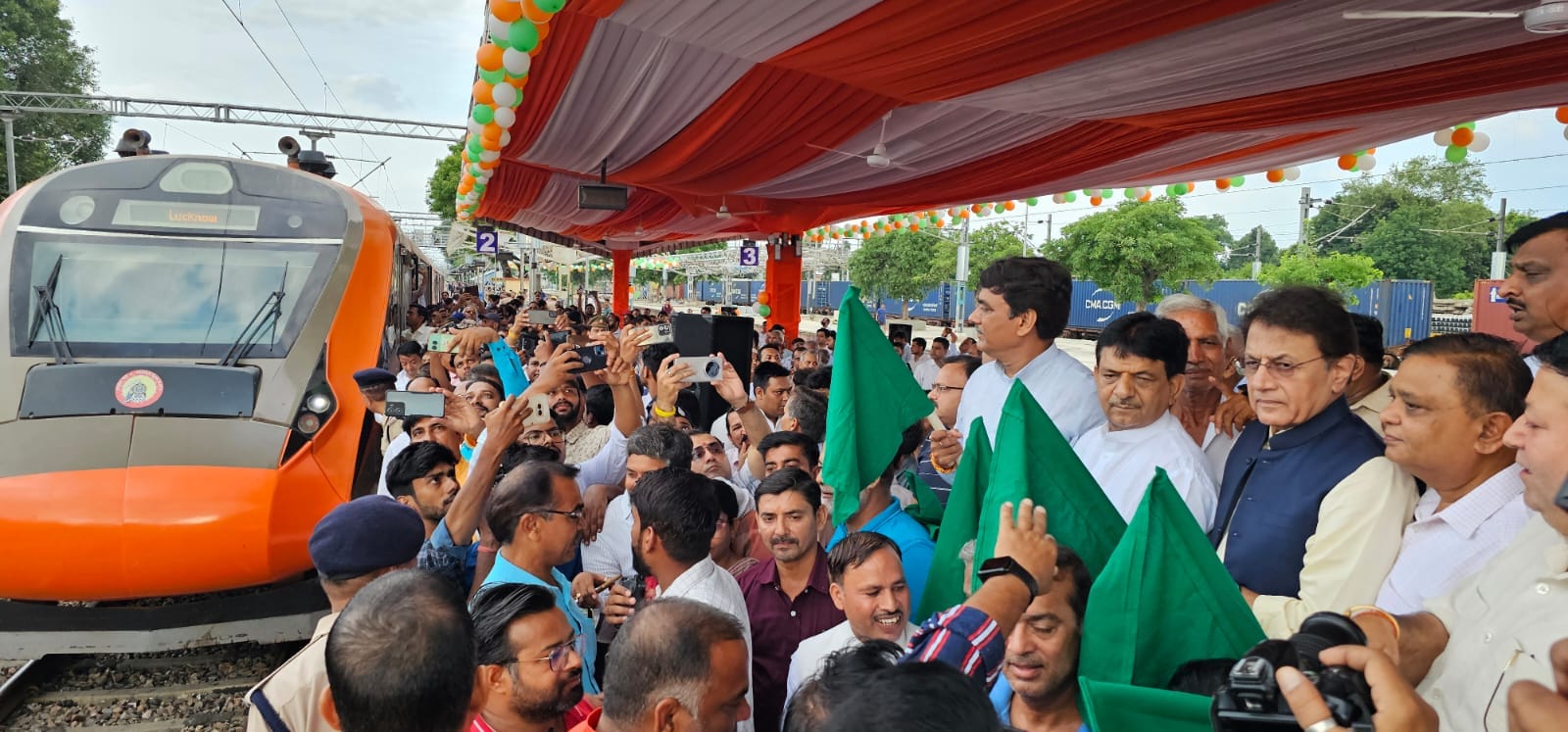 राज्यमंत्री कपिल देव ने हापुड़ रेलवे स्टेशन से दिखाई वंदे भारत ट्रेन को हरी झंडी