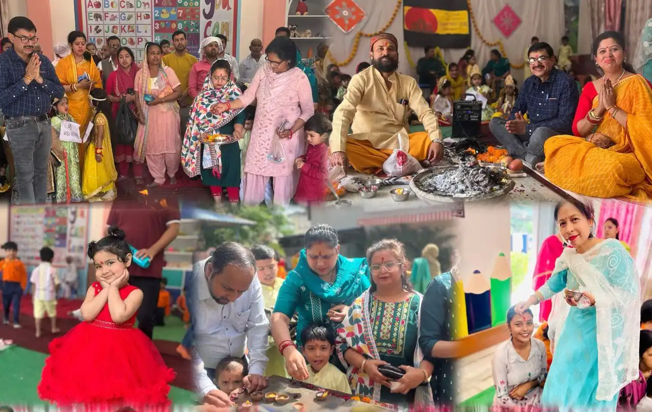 गाँधी कॉलोनी के देवोपम किड्स स्कूल में नव संवत 2082 पर बच्चों व अभिभावकों की उपस्थिति में किया गया हवन व पूजन