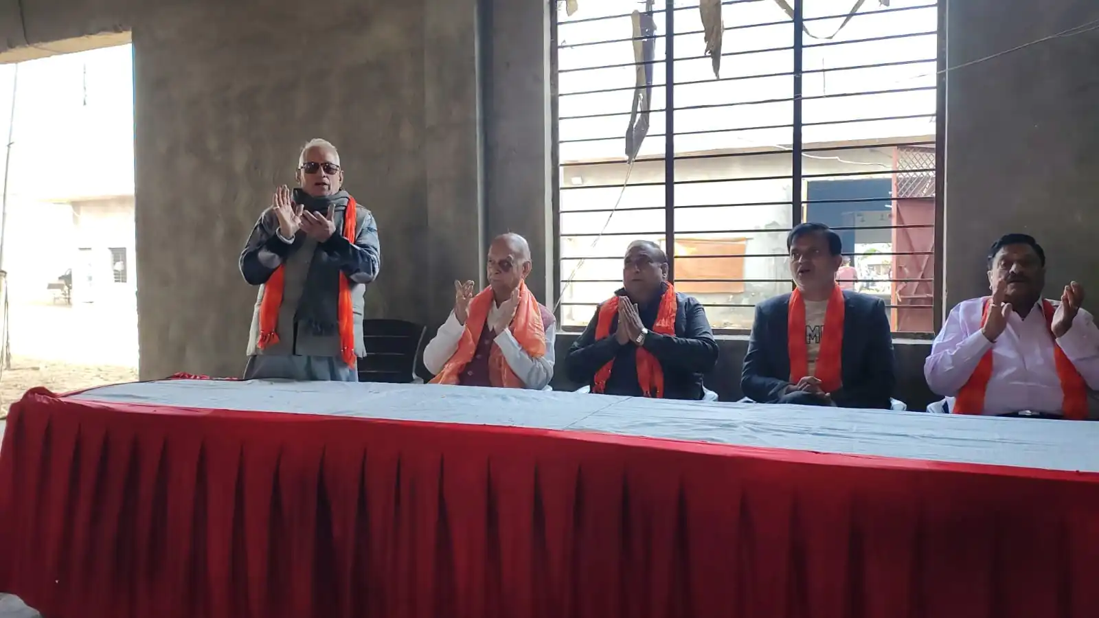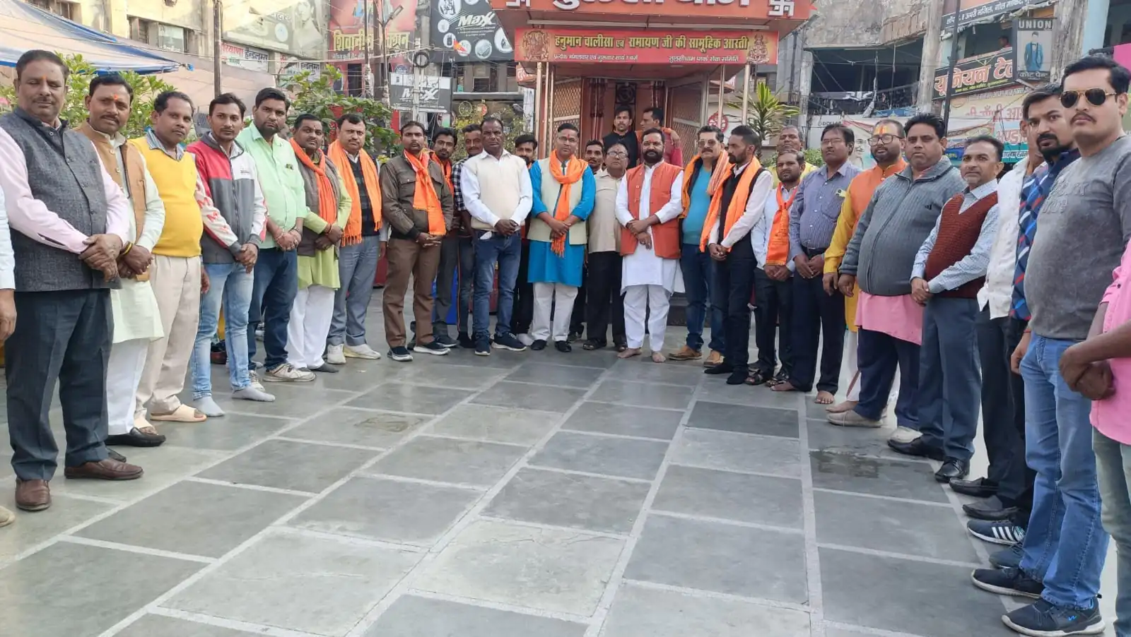 बागेश्वर धाम के पंडित धीरेंद्र शास्त्री की पदयात्रा के समर्थन में शिव चौक के पास हुआ सामुहिक हनुमान चालीसा का पाठ