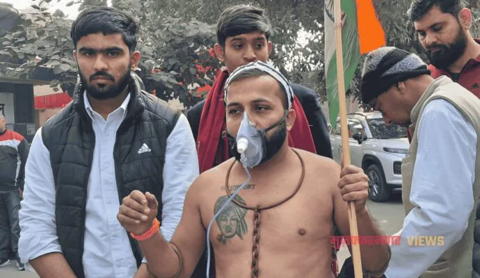 वायु प्रदूषण के विरोध में ऑक्सीजन का मास्क लगाकर डीएम दफ़्तर पहुँचा युवक