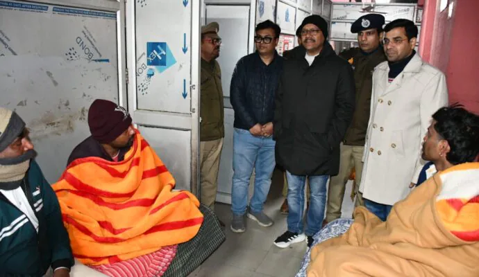 बढ़ती ठंड के बीच रविवार रात डीएम व एसएसपी ने किया रेनबसेरों का निरीक्षण