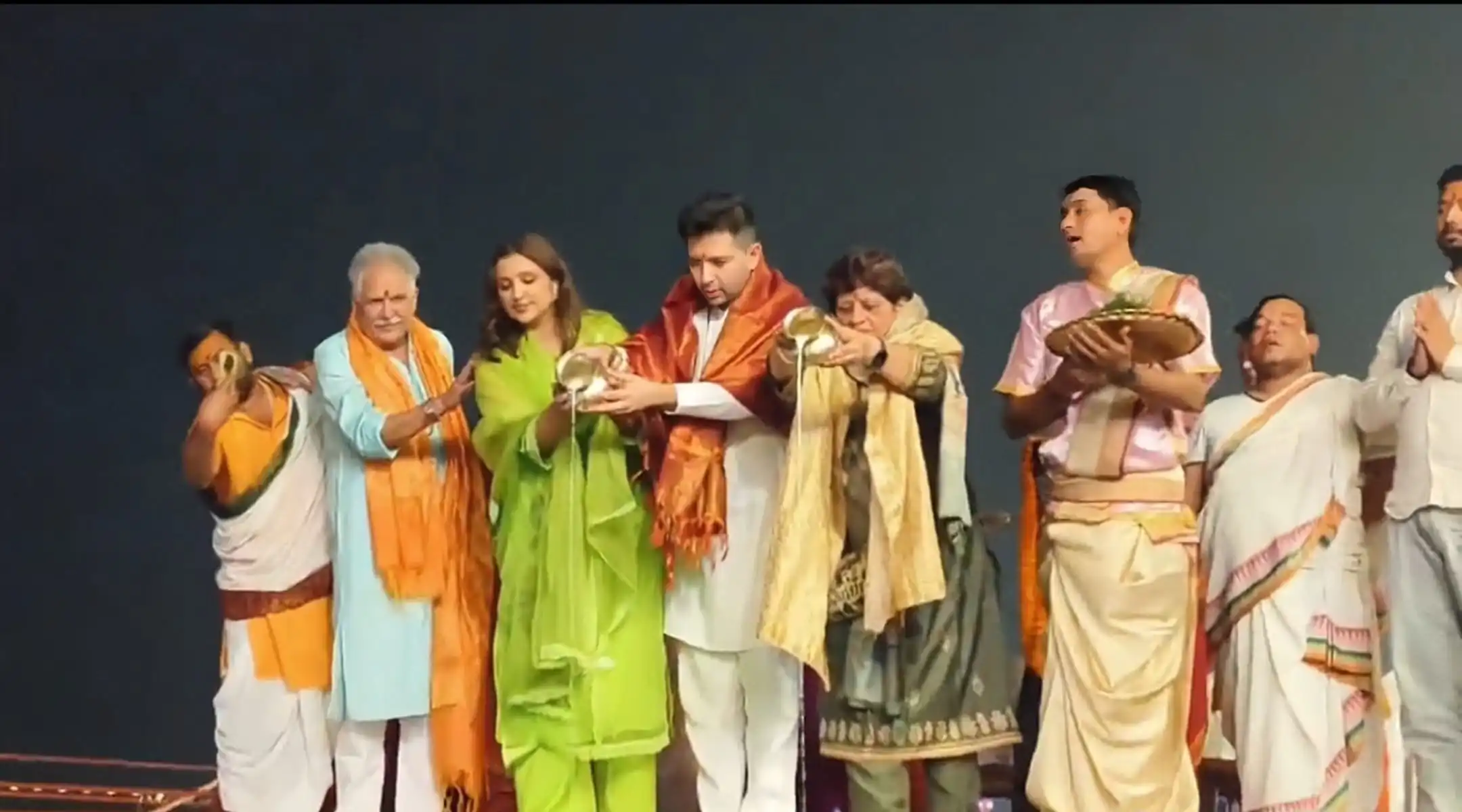वाराणसी (10 नवंबर)- प्रसिद्ध दैनिक संध्या गंगा आरती में रविवार को एक्ट्रेस परिणीति चोपड़ा अपने पति आप सांसद राघव चड्ढा के साथ पहुंची। बाबा काशीविश्वनाथ के दर्शनों के बाद गंगा आरती में शामिल हुए। जहाँ उन्होंने दशाश्वमेध घाट पर गंगा आरती देखी, हर-हर महादेव के जयकारे भी लगाए। उनके साथ राघव चड्ढा की मां और अन्य परिजन भी मौजूद रहे।