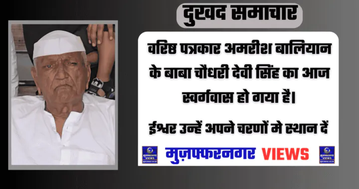दुःखद समाचार- अत्यंत दुःख के साथ सूचित करना पड़ रहा है कि वरिष्ठ पत्रकार अमरीश बालियान के दादा श्री चौधरी … चौधरी देवी सिंह का निधन, आज होगा अंतिम संस्कार को पढ़ना जारी रखें