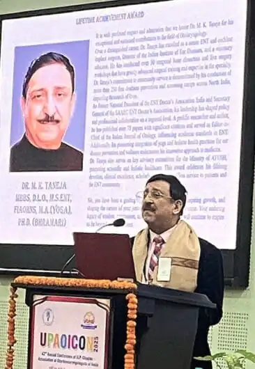 19-21 सितम्बर को उत्तर प्रदेश ई०एन०टी० डॉक्टर्स के वार्षिक अधिवेशन में जिलाधिकारी बरेली अविनाश सिंह के द्वारा डॅ० एमके तनेजा को उनकी चिकित्सा शिक्षा के क्षेत्र में विशिष्ट योगदान के लिये लाइफ टाईम एचीवमैन्ट अवार्ड से सम्मानित किया गया।