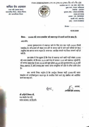 इसके साथ ही उन्होंने आधुनिक एवं तीव्र गति वाली रेल सेवाओं के विस्तार पर बल देते हुए सुझाव दिया कि 22490 वंदे भारत एक्सप्रेस को मेरठ के स्थान पर सहारनपुर से संचालित किया जाए। उन्होंने बताया कि यदि यह ट्रेन सहारनपुर से प्रातः लगभग 05:00 बजे प्रारंभ होकर मुजफ्फरनगर एवं मेरठ होते हुए लखनऊ तक संचालित की जाती है, तो इससे पश्चिमी उत्तर प्रदेश के लाखों यात्रियों को लखनऊ तक तीव्र, सुरक्षित एवं आधुनिक रेल सेवा उपलब्ध हो सकेगी। उन्होंने यह भी सुझाव दिया कि इस सेवा को आगे वाराणसी तक बढ़ाने की संभावनाओं पर भी विचार किया जा सकता है, जिससे यात्रियों को व्यापक लाभ प्राप्त होगा।