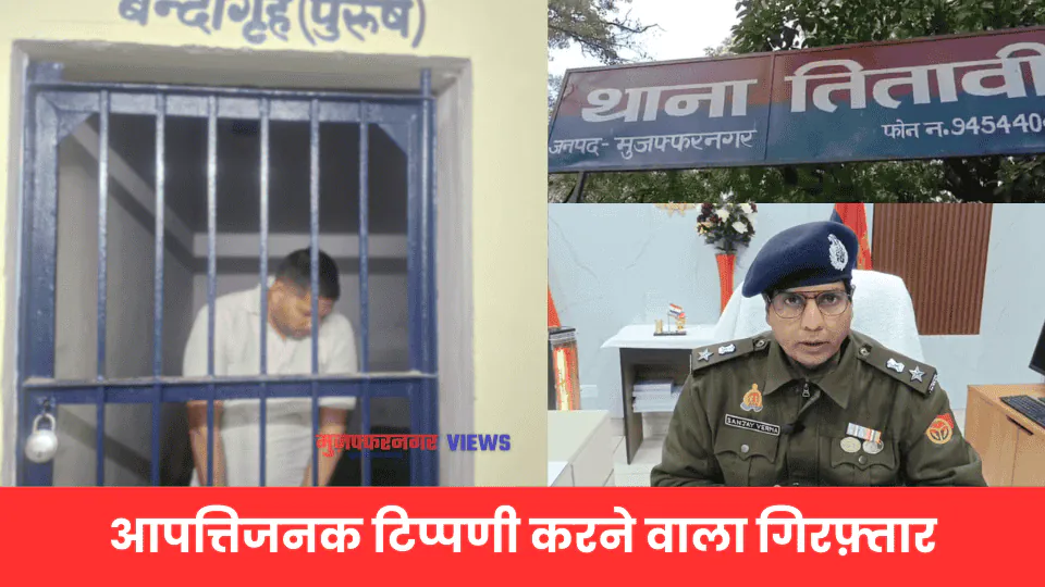 मुजफ्फरनगर- सोशल मीडिया पर संवैधानिक पदों पर बैठे व्यक्तियों के खिलाफ आपत्तिजनक टिप्पणी करना एक युवक को भारी पड़ गया। मुजफ्फरनगर के वरिष्ठ पुलिस अधीक्षक (SSP) संजय कुमार वर्मा ने जानकारी देते हुए बताया कि सोशल मीडिया के माध्यम से एक वीडियो संज्ञान में आया था, जिसमें एक युवक प्रधानमंत्री मोदी और मुख्यमंत्री योगी के खिलाफ बेहद अभद्र और अमर्यादित भाषा का प्रयोग कर रहा था। पुलिस ने मामले की गंभीरता को देखते हुए तत्काल मुकदमा दर्ज कर आरोपी को गिरफ्तार कर लिया है।