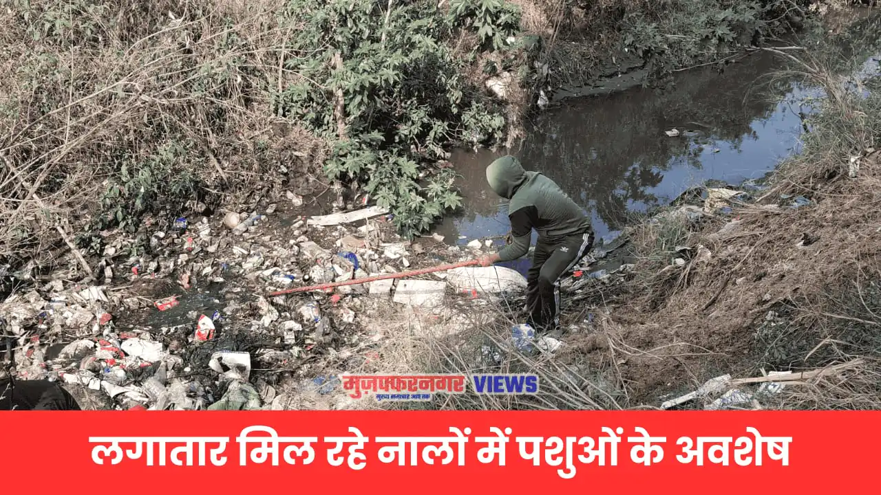 मुजफ्फरनगर- जनपद के जानसठ रोड स्थित सुरेंद्र नगर के पास आज उस समय सनसनी फैल गई, जब पास से गुजर रहे एक नाले में भारी संख्या में पशुओं के अवशेष देखे गए। नाले में गाय और भैंस के बछड़ों के अवशेष मिलने की सूचना जैसे ही फैली, स्थानीय लोगों में भारी आक्रोश पनप गया। आनन-फानन में इसकी जानकारी प्रमुख गौसेवक निशु को दी गई, जिन्होंने मौके पर पहुंचकर स्थिति का जायजा लिया।