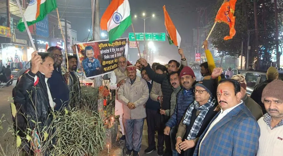 मुज़फ्फरनगर- आज गुरुवार शाम भोपा रोड पर समस्त हिंदू समाज के आह्वान पर बांग्लादेश में हिंदू समाज के विरुद्ध हो रही हिंसक घटनाओं के विरोध में एक शांतिपूर्ण कैंडल मार्च का आयोजन किया गया। कैंडल मार्च के उपरांत बांग्लादेश में हुई हिंसा में मारे गए हिंदू युवक दीपू सहित सभी दिवंगत हिंदू नागरिकों की आत्मा की शांति हेतु दो मिनट का मौन रखकर भावभीनी श्रद्धांजलि अर्पित की गई।