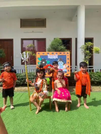 बच्चे कांवड़िएँ बनकर आए और पूरे उत्साह के साथ “ॐ नमः शिवाय”, “बोल बम” जैसे मंत्रों का उच्चारण करते हुए शिवभक्ति का सुंदर प्रदर्शन किया, जिसने समूचे आयोजन को और भी आध्यात्मिक तथा जीवंत बना दिया। विद्यालय परिसर को बेलपत्र, त्रिशूल, डमरू एवं शिव चित्रों से सजाया गया था, जिसने आयोजन को और भी दिव्य स्वरूप प्रदान किया।