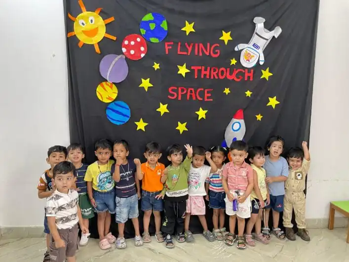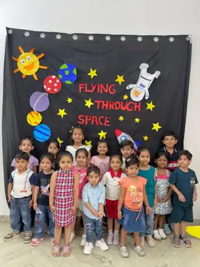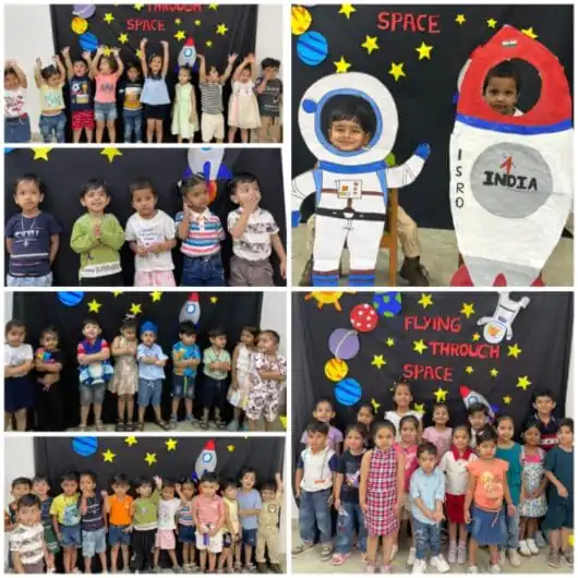 आज के दिन की शुरुआत बच्चों के लिए अंतरिक्ष-आधारित शिल्प गतिविधियों से हुई। नन्हे हाथों ने अपनी कल्पना को उड़ान देते हुए रॉकेट, ग्रह और तारे बनाए।
