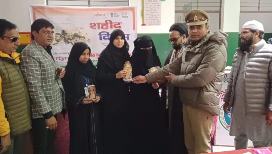 मुजफ्फरनगर- (मदरसे में गूंजा राष्ट्रगान) अंबा विहार स्थित मदरसा इदारतुस सालिहात में शहीद दिवस के अवसर पर एक भव्य और भावपूर्ण कार्यक्रम का आयोजन किया गया। युवा कार्यक्रम एवं खेल मंत्रालय (भारत सरकार) के ‘मेरा युवा भारत’ अभियान के सौजन्य से आयोजित इस कार्यक्रम में सामूहिक राष्ट्रगान के साथ देश की एकता और अखंडता का संदेश दिया गया। कार्यक्रम में मुख्य अतिथि के रूप में प्रसिद्ध समाजसेवी मनीष चौधरी ने शिरकत की।