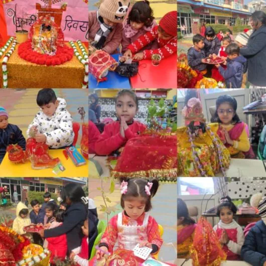 स्कूल के बच्चों के माता पिता ने अपने-अपने घर से तुलसी के पौधों को लाल चुनरी से सजा कर भेजा। स्कूल प्रांगण में सभी पौधों को रख कर सभी बच्चों और टीचर्स ने मिलकर मां तुलसी की आरती की। प्रिंसिपल नेहा अरोरा ने सभी बच्चों को बताया कि तुलसी माता का हमारे जीवन में बहुत ही अधिक महत्व है।